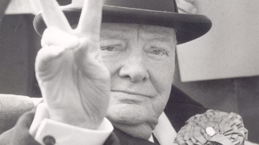 May 25, 1959 - London, England, UK - British PM WINSTON CHURCHILL gives peace sign at the start of his tour constituency.,Image: 23414239, License: Rights-managed, Restrictions: , Model Release: no, Pictured: [Churchill, Winston], Credit line: KEYSTONE Pictures USA / Zuma Press / ContactoPhoto